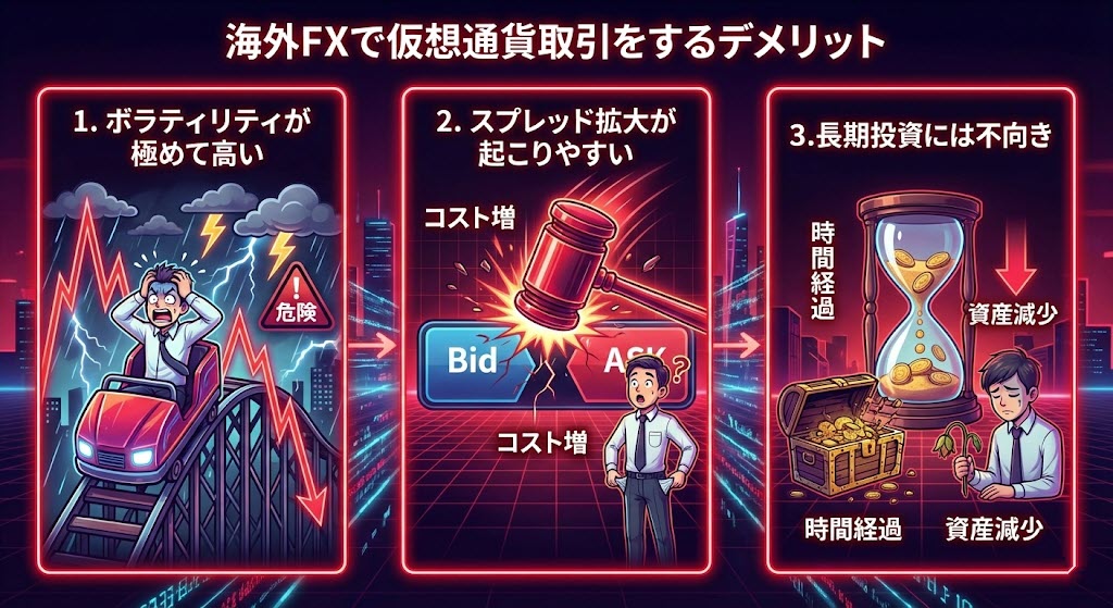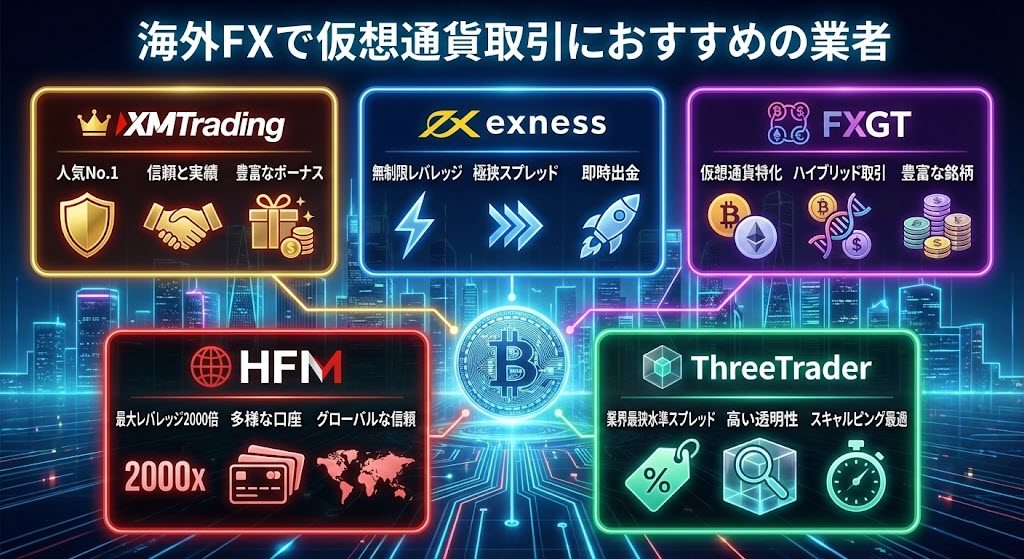 本記事では、海外FXで仮想通貨取引をする際のおすすめ業者と、そのメリット・デメリット、リスクを抑えるための注意点を詳しく解説します。